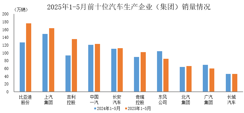 2025年1-5月前十位汽车生产企业(集团)销售情况简析